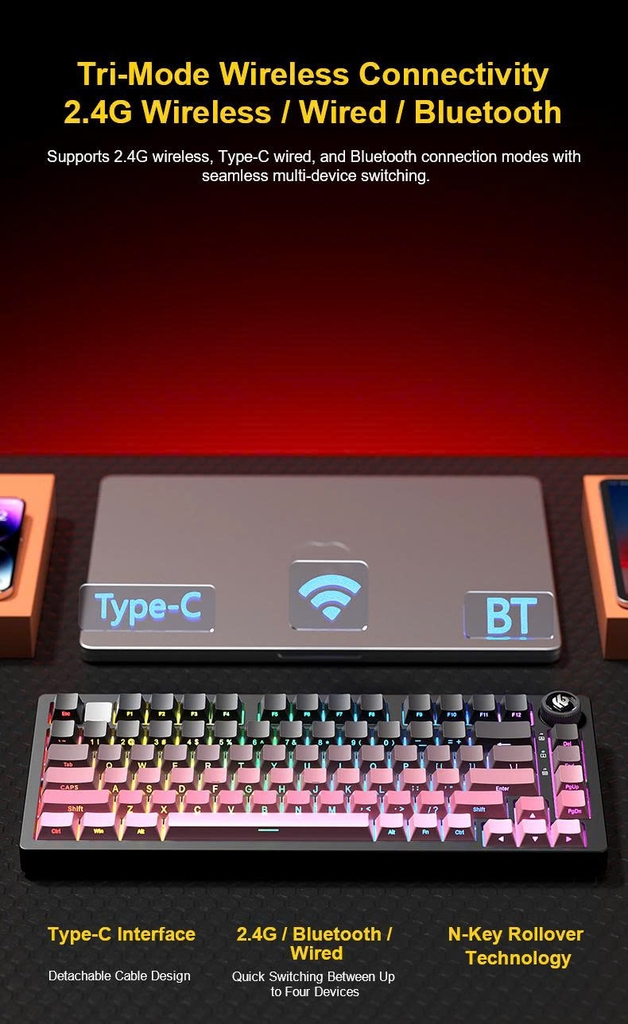 - 3 MODE kết nối: cáp usb TypeC/Bluetooth/2.4G