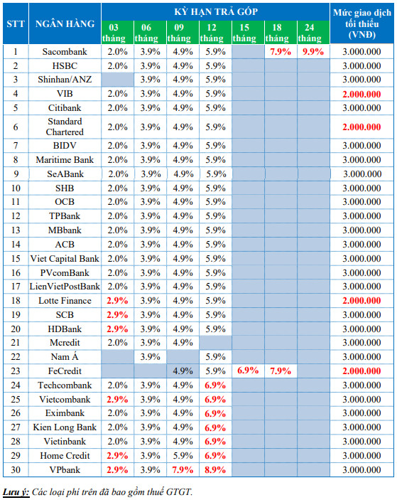Lưu ý: Chỉ với đơn hàng giá trị từ 3.000.000 trở lên sẽ được hỗ trợ trả góp qua MPOS với lãi suất 0%. Phí quẹt thẻ sẽ được cập nhật sau khi shop gửi link quẹt thẻ. Phí có thể thay đổi do MPOS quy định.